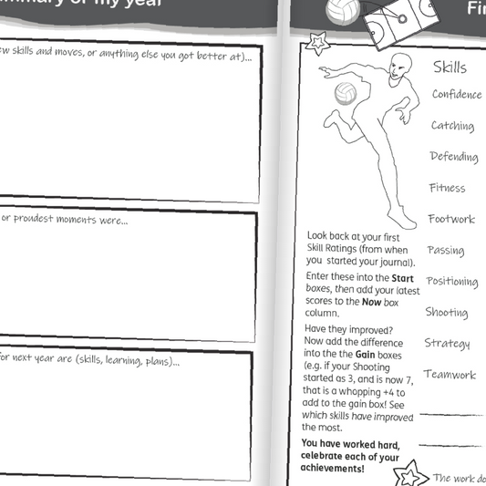 Win or lose, children can learn to celebrate their success and gains with helpful, guided self-reflection. Track skills, match and competition results, and decompress after a game with fun activities. Our journals can be a game changer!